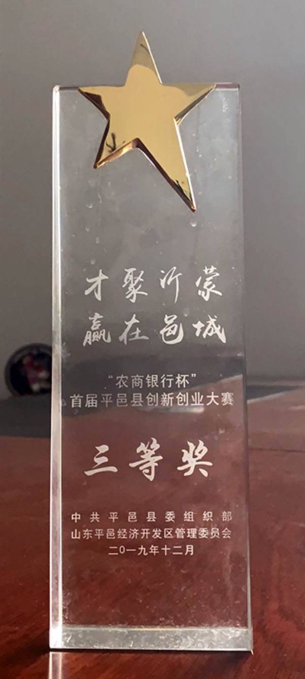 “農(nóng)商銀行杯”首屆平邑縣創(chuàng)新創(chuàng)業(yè)大賽三等獎(jiǎng)